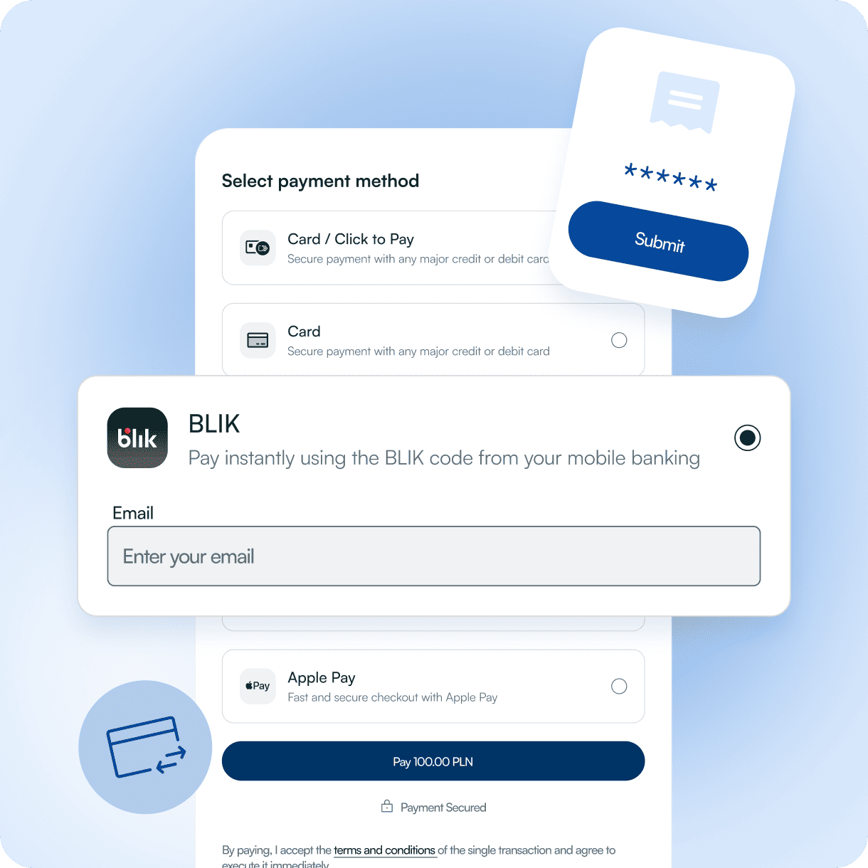 The sender authenticates in their bank’s BLIK flow (PIN, biometrics, etc.), and the payout is processed via Visa/Mastercard infrastructure. Fenige, as a regulated payment institution, handles the transaction according to payments law and scheme rules.
