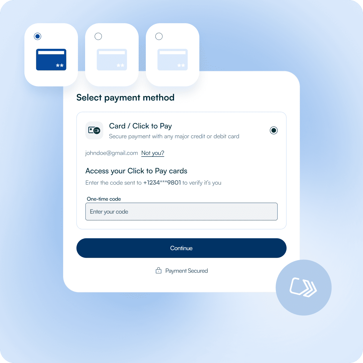 Add another tokenized, SCA-friendly card option next to Apple Pay, Google Pay, classic card form and bank payments.